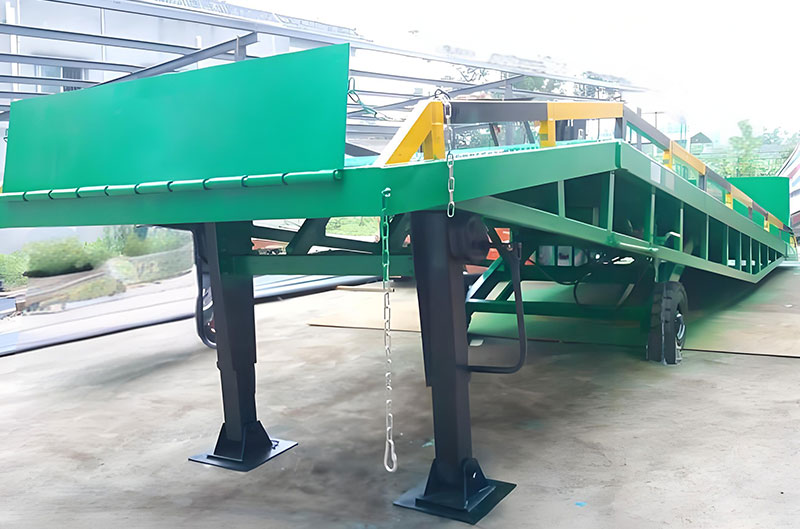 電動移動式登車橋DCQY10-0.6載重10噸,用于卡車、集裝箱裝卸貨時,叉車從地面行駛至車廂的過渡橋。移動登車橋的可以移動性,可以滿足在不同的場地進行裝卸貨作業。