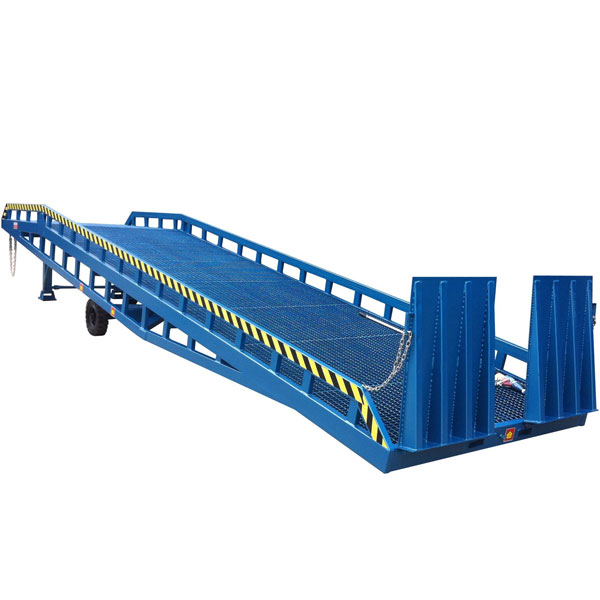 DCQY移動式液壓登車橋使用于裝卸作業(yè)不固定的場合,叉車可以直接通過它從地面駛?cè)胴涇嚿线M行裝卸作業(yè),該產(chǎn)品具有高強度的焊接鋼構(gòu),表面鋪設(shè)防滑鐵網(wǎng),采用手動液壓泵升降